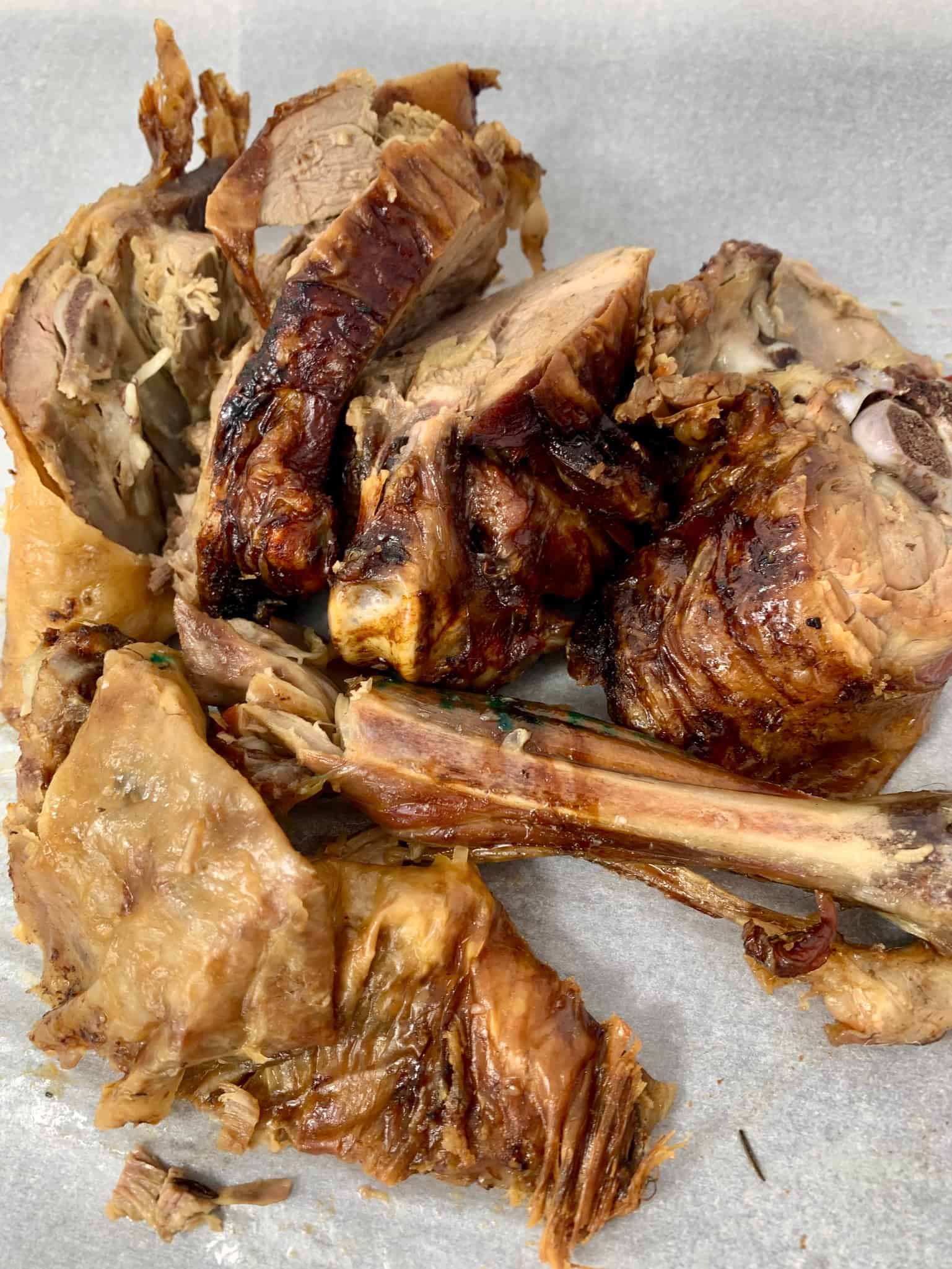 My secret ingredient for this Greek leg of lamb with yogurt (Giaourtlou) recipe is the delicious lamb juices! or lamb broth if you prefer.